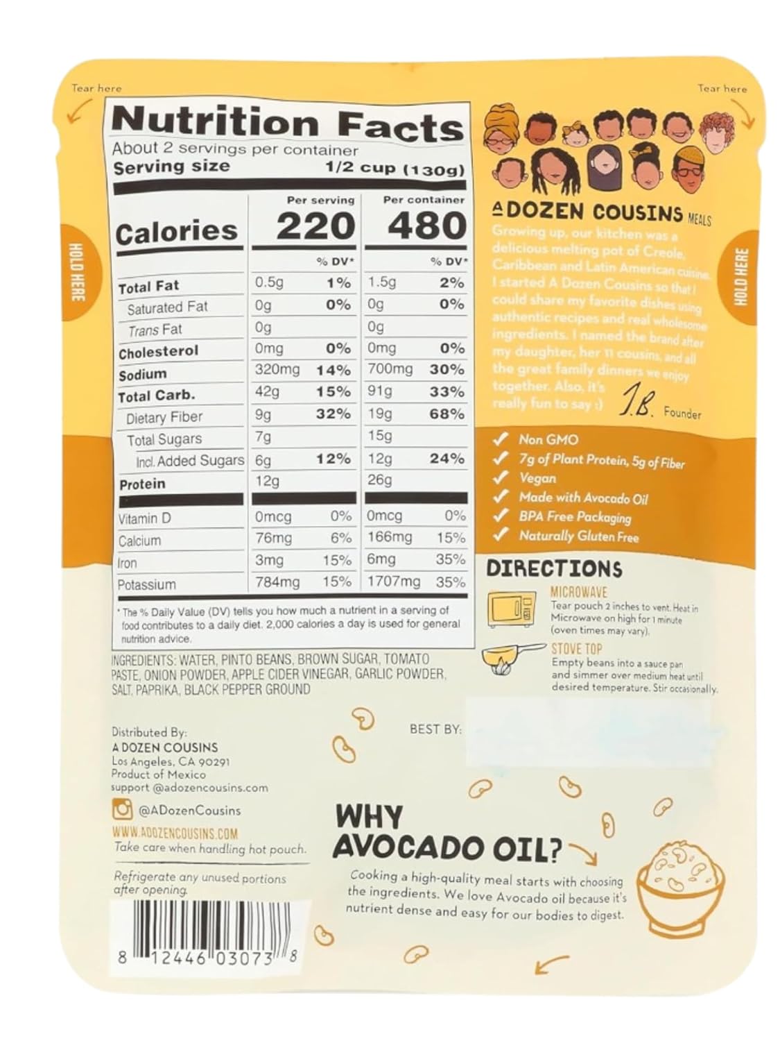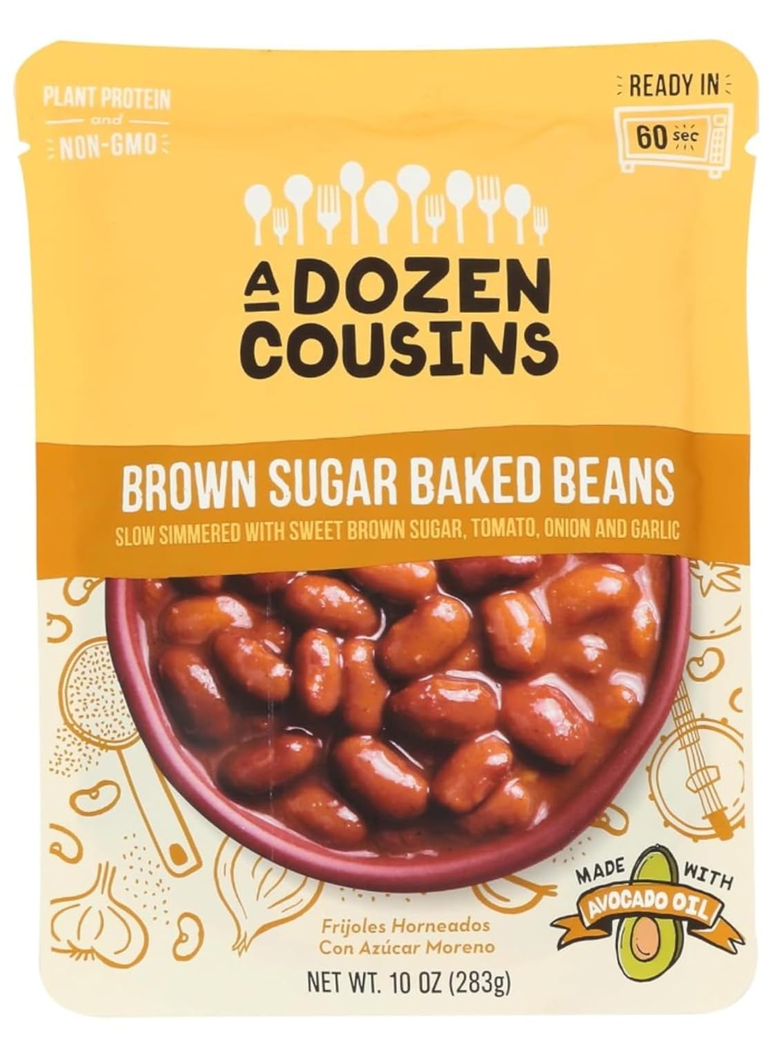 Sugar baked beans in a microwavable pouch, ready in 60 seconds. Slow simmered with sweet brown sugar, tomatoe, onion, garlic, and avocado oil. Grab this delicious instant bean side for a quick, flavorful meal.