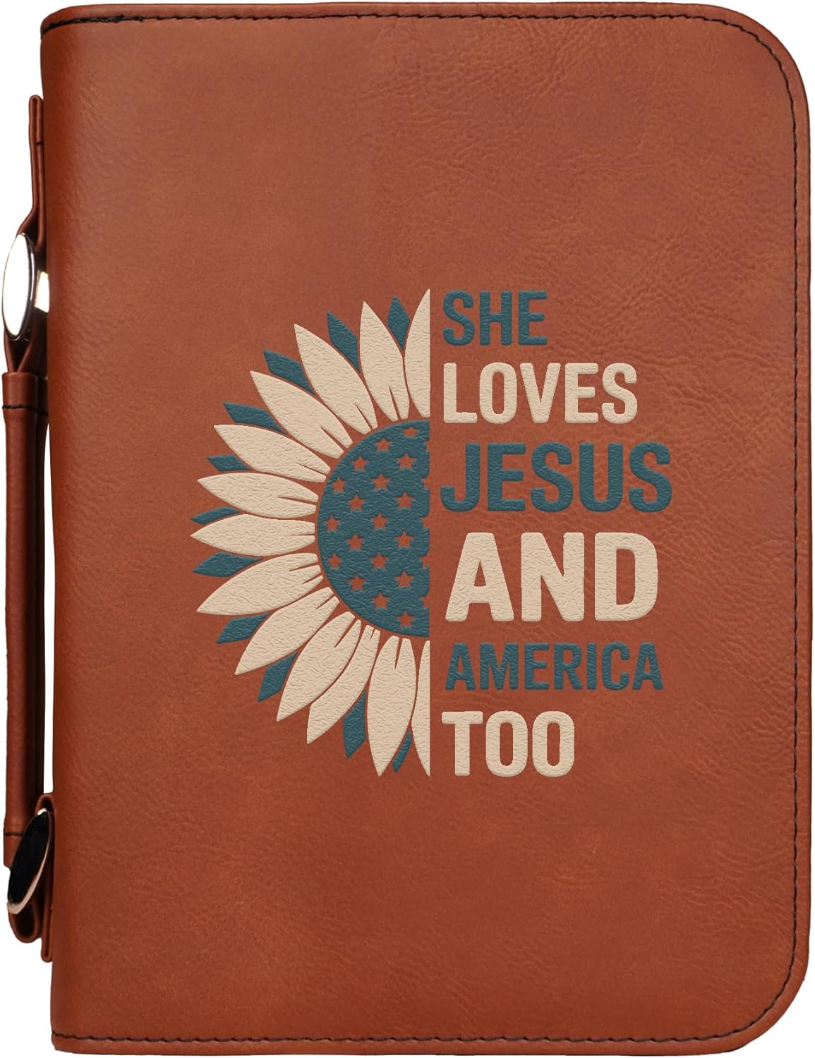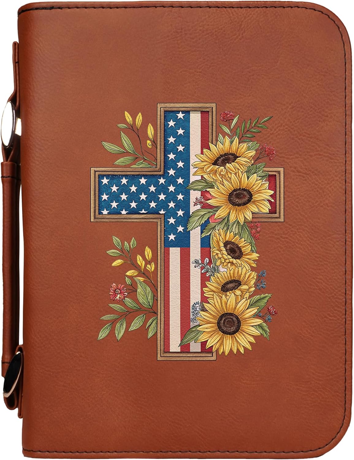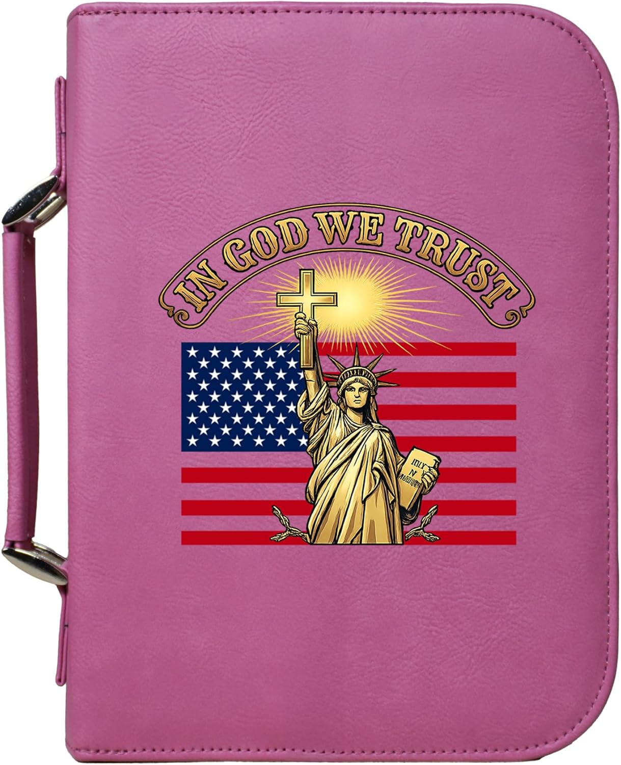 Carry your Bible with confidence in this vegan leather “Faith Over Fear” cover, featuring a bold cross and flag design. Built for durability and daily use, this case offers a secure zippered closure to protect your Bible or Scripture journal. Inside, a pen holder and pocket keep study essentials neatly organized, while the sturdy handle makes it convenient to bring along to church, study groups, or travel. An inspiring accessory and a meaningful gift for anyone who treasures their faith.