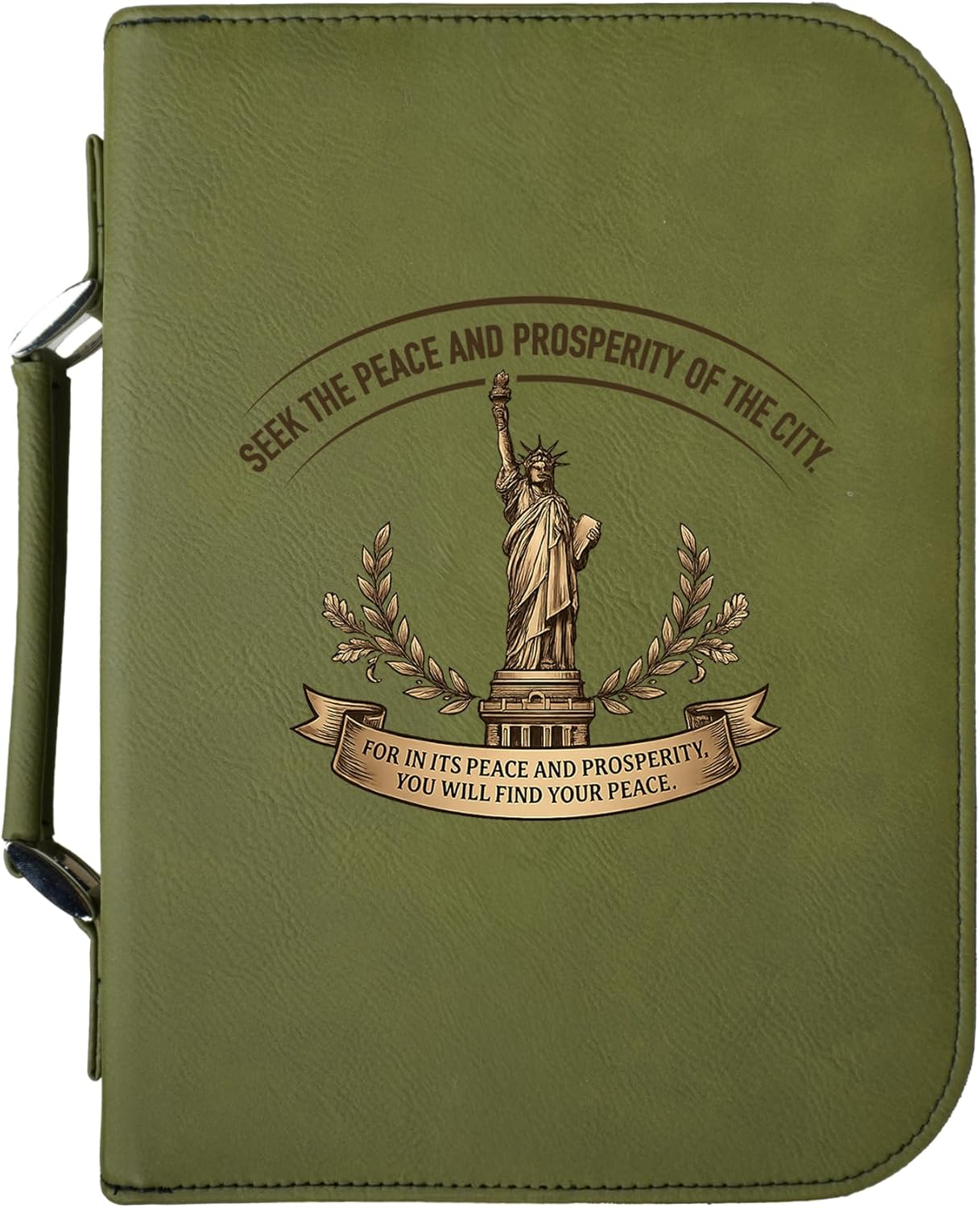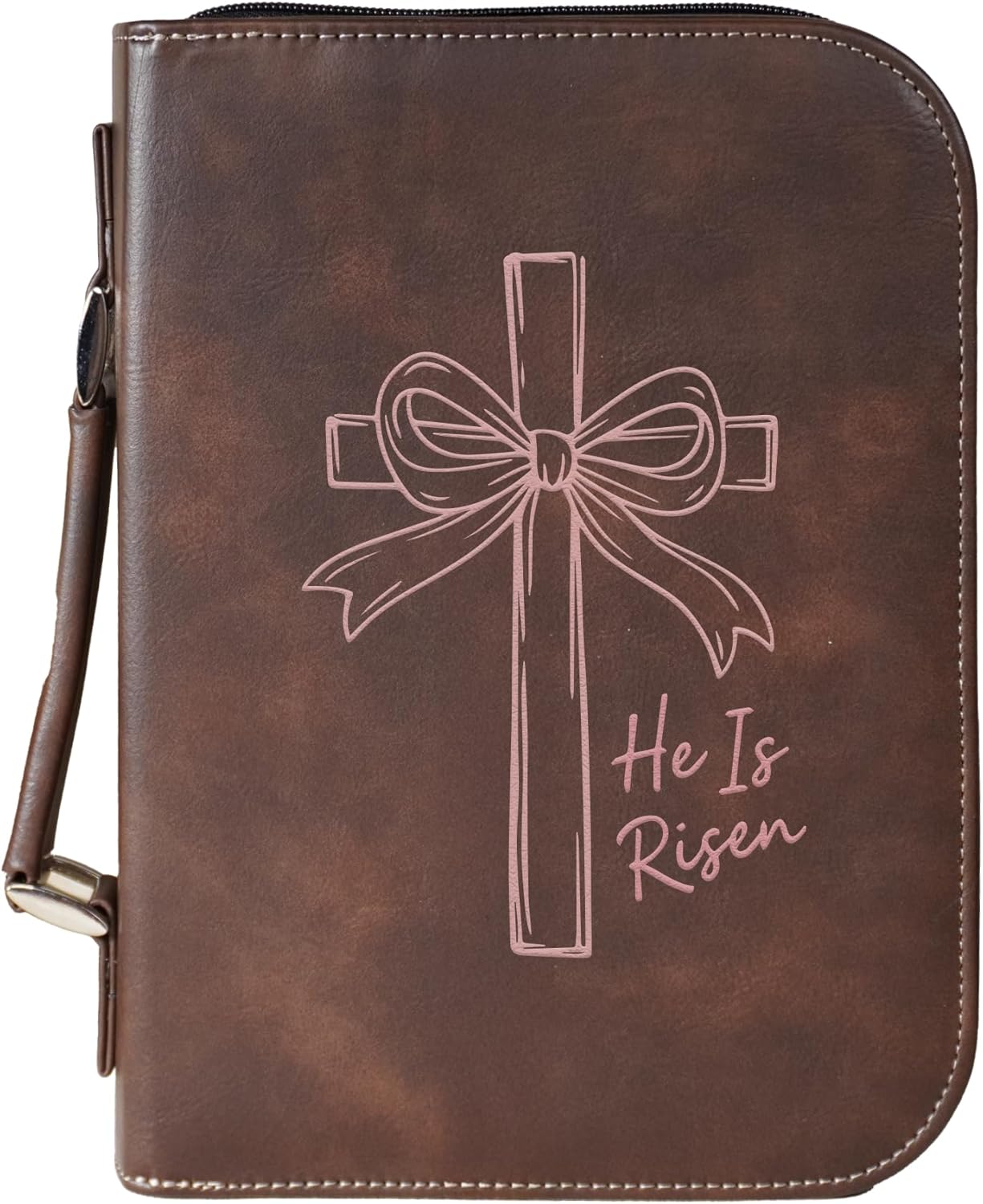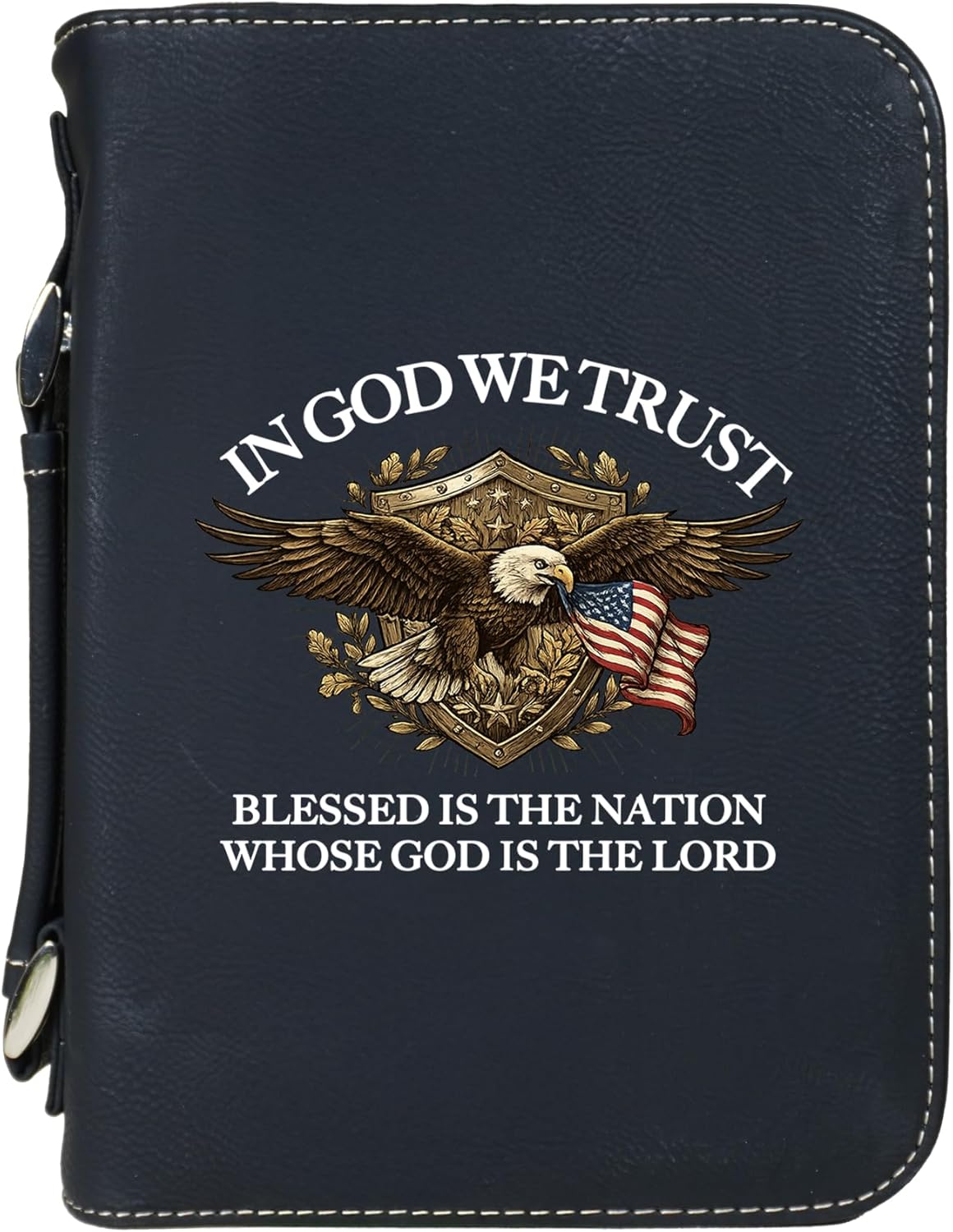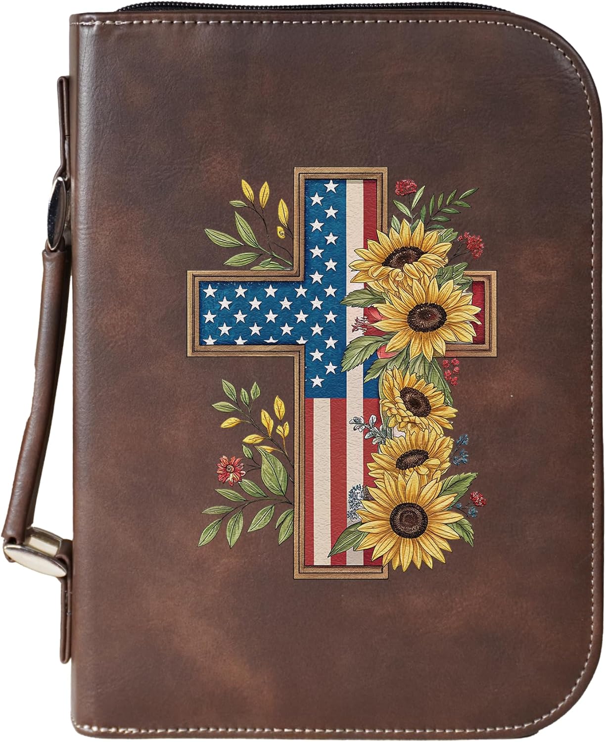 Carry your Bible with confidence in this vegan leather “Faith Over Fear” cover, featuring a bold cross and flag design. Built for durability and daily use, this case offers a secure zippered closure to protect your Bible or Scripture journal. Inside, a pen holder and pocket keep study essentials neatly organized, while the sturdy handle makes it convenient to bring along to church, study groups, or travel. An inspiring accessory and a meaningful gift for anyone who treasures their faith.