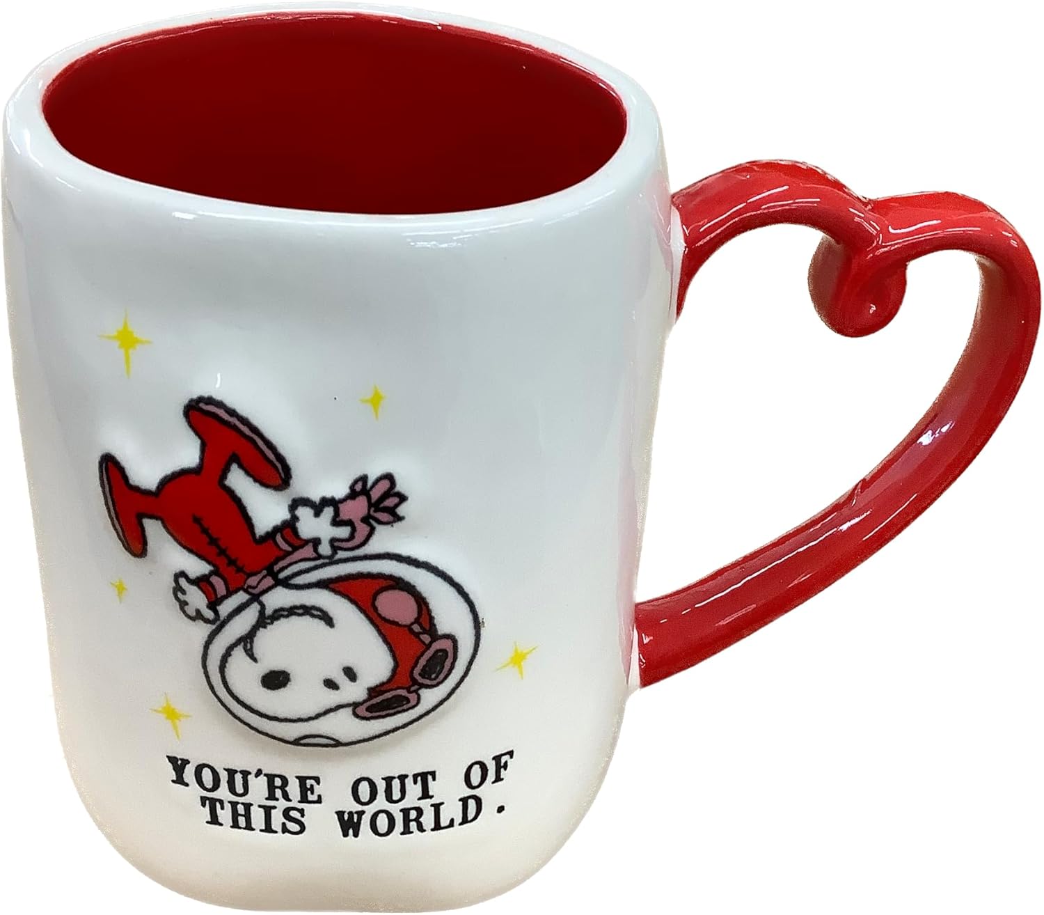 This charming Rae Dunn Peanuts Valentine's Day coffee mug brings heartfelt whimsy to your morning routine. Featuring beloved Peanuts character surrounded by love letters and floating hearts, this double-sided ceramic mug displays adorable artwork on one side and the hand-lettered phrase "BE MINE" on the other. The distinctive 3D red bow accent attached to the handle adds a delightful dimensional touch that makes this mug stand out from ordinary drinkware. With its crisp white exterior and vibrant red interior, this 14-ounce capacity mug is perfect for coffee, tea, hot chocolate, or any favorite beverage. The generous size ensures you can enjoy plenty of your preferred drink while celebrating the season of love. Both dishwasher and microwave safe, this mug combines convenience with collectible appeal. Whether you're treating yourself or searching for the perfect Valentine's Day gift for a Peanuts fan, this festive mug captures the sweet spirit of the holiday with its playful design and quality craftsmanship.